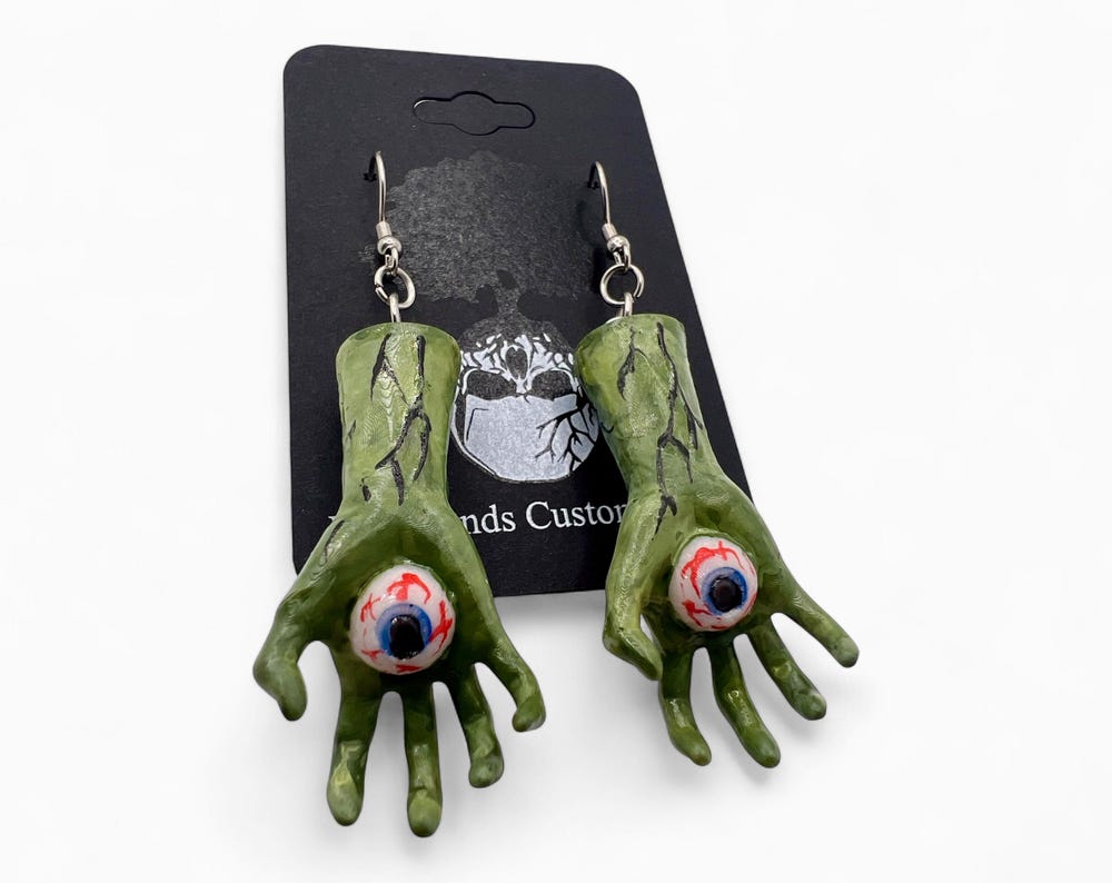 Crawling Severed Hand Earrings – 3D Hand-Painted Gothic Jewelry for Spooky Aesthetic